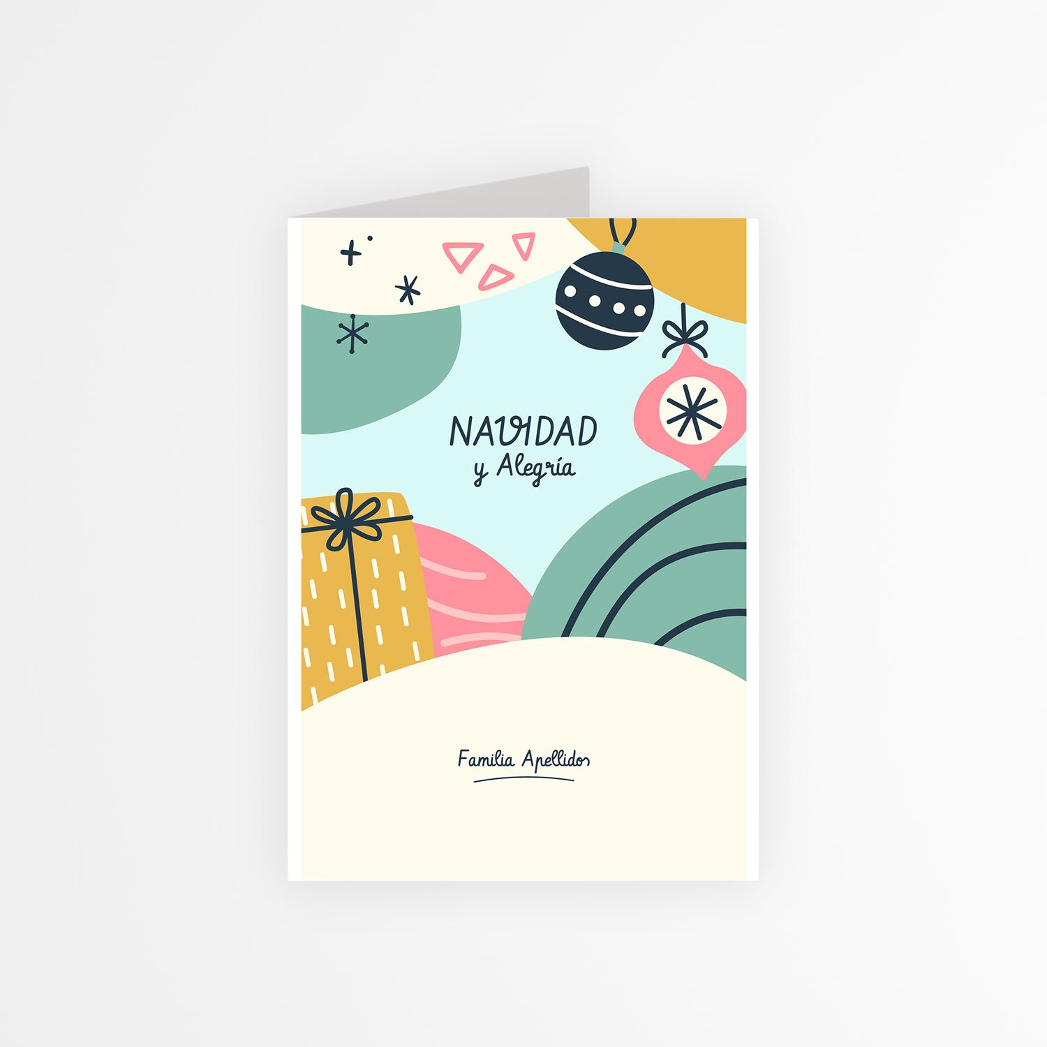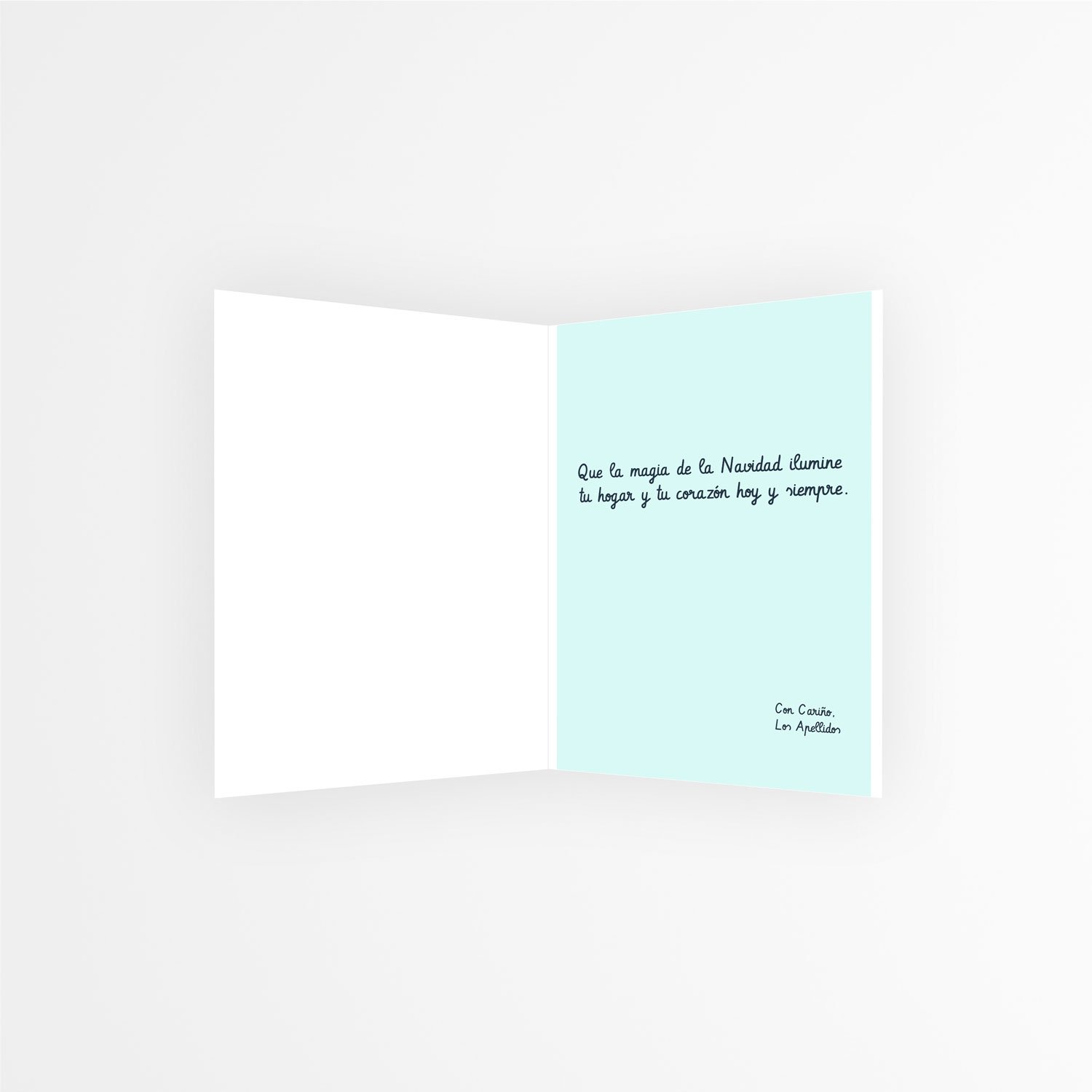 Llena de color y espíritu festivo, esta tarjeta celebra la magia de compartir. Personalízala con tus apellidos familiares y elige un mensaje navideño para regalar alegría con un diseño lleno de buenas vibras.